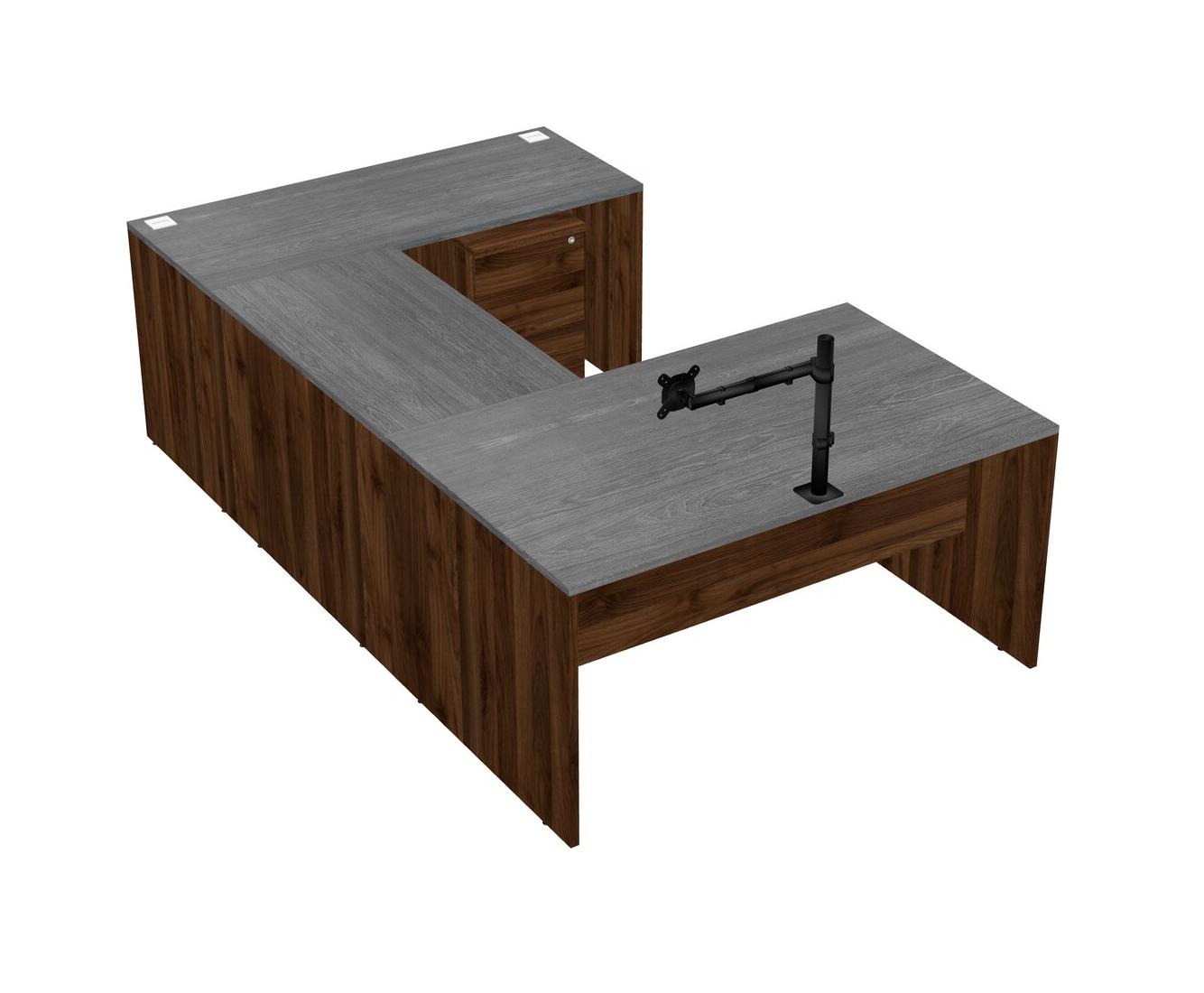 Bureau En U, Crédence, Tiroirs Mobiles En Bois, Bras D'écran (bras Simple)