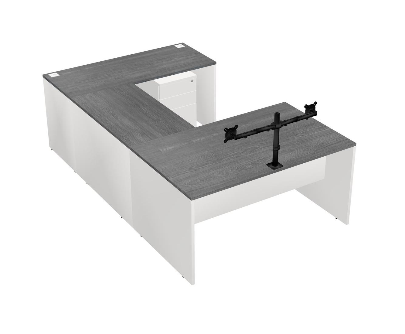 Bureau En U, Crédence, Tiroirs Mobiles En Bois, Bras Pour écran (double Bras)