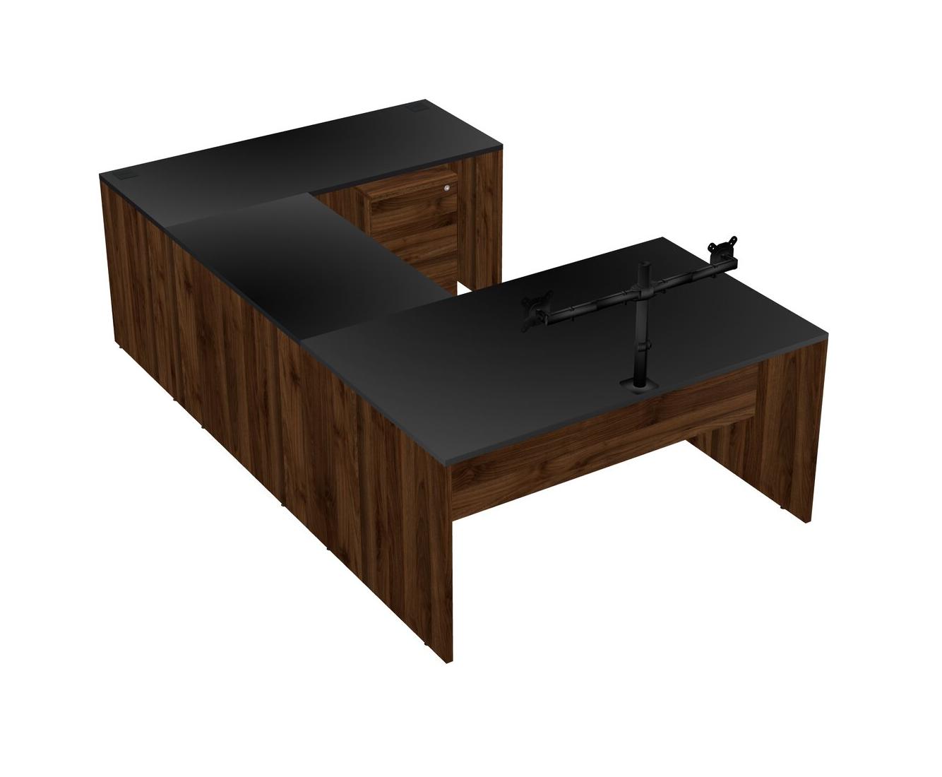 Bureau En U, Crédence, Tiroirs Mobiles En Bois, Bras Pour écran (double Bras)