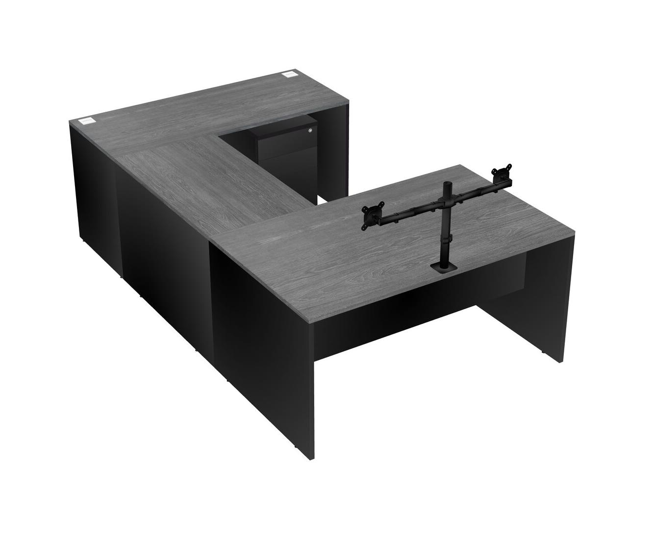 Bureau En U, Crédence, Tiroirs Mobiles En Bois, Bras Pour écran (double Bras)