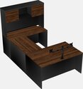 Bureau En U, Crédence, Bureau + Huche + Bras Pour écran (bras Doubles)