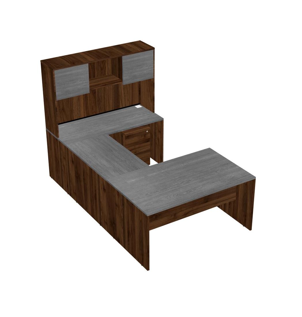 Bureau En U, Crédence, Tiroirs Mobiles En Bois Et Clapier