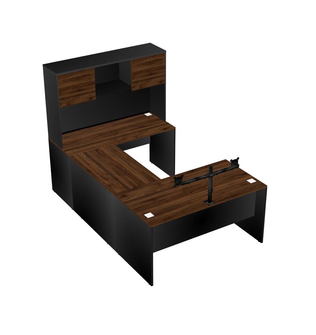 Bureau En U, Crédence, Bureau + Huche + Bras Pour écran (bras Doubles)