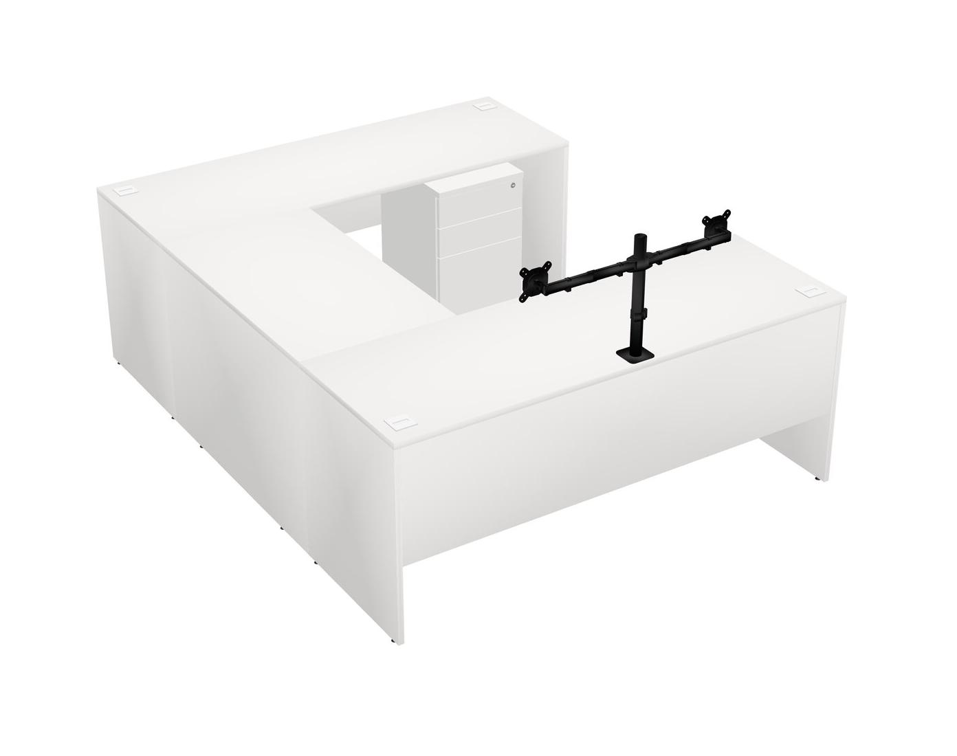 Bureau En U, Crédence, Tiroirs Mobiles En Bois, Bras Pour écran (double Bras)