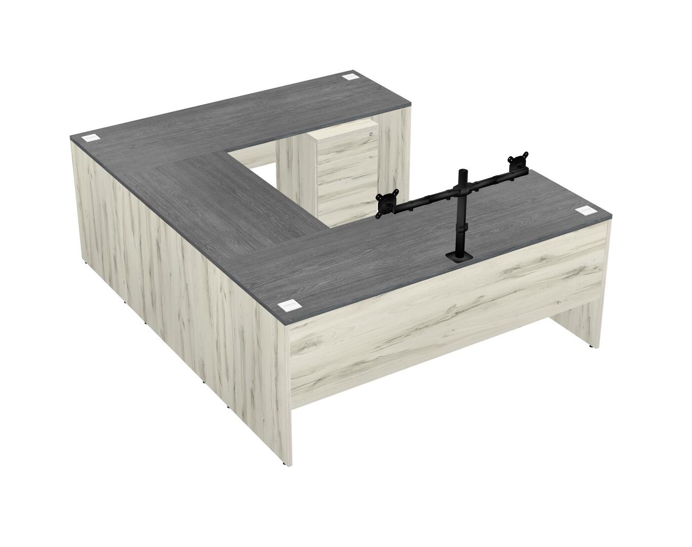 Bureau En U, Crédence, Tiroirs Mobiles En Bois, Bras Pour écran (double Bras)