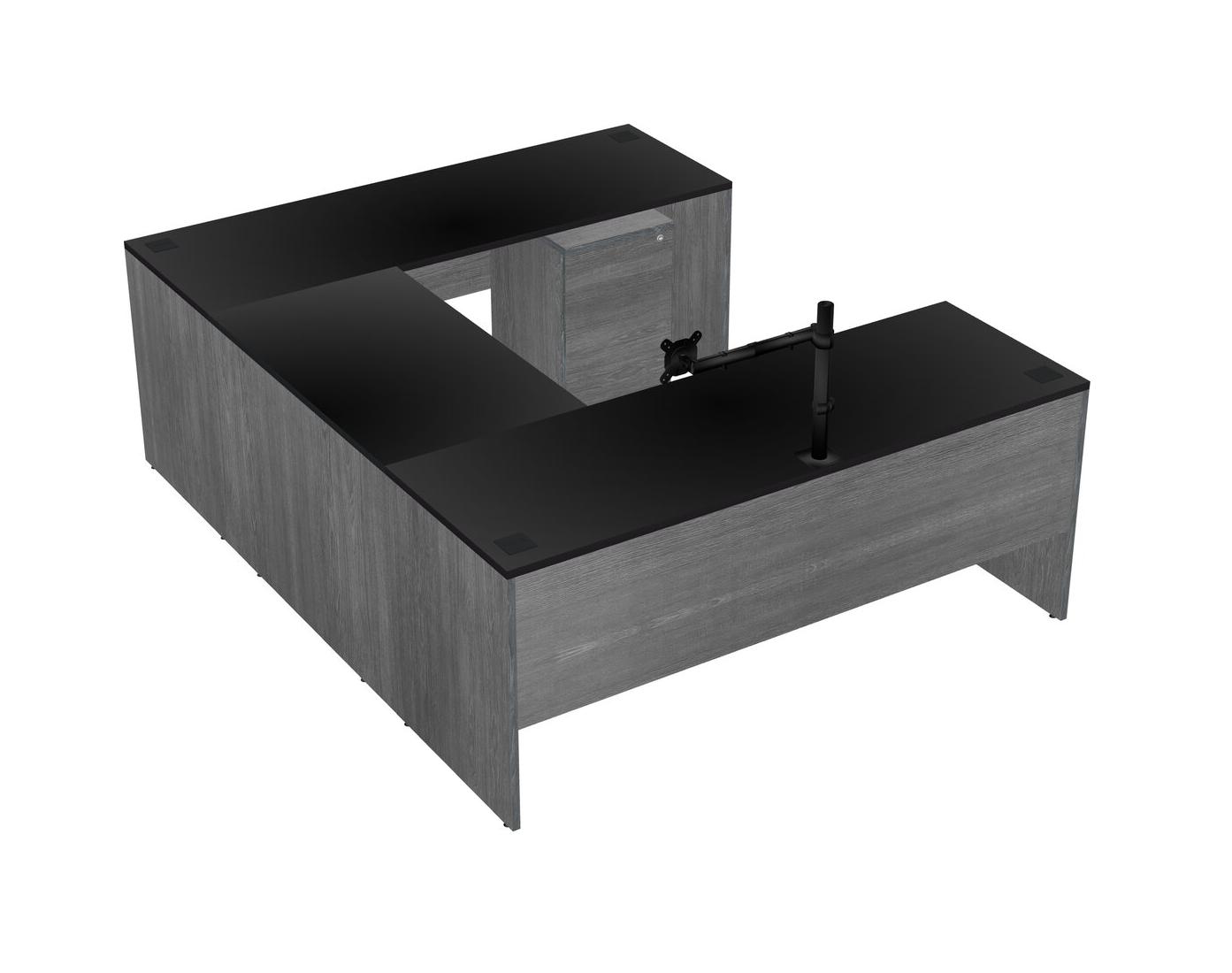 Bureau En U, Crédence, Tiroirs Mobiles En Bois, Bras D'écran (bras Simple)