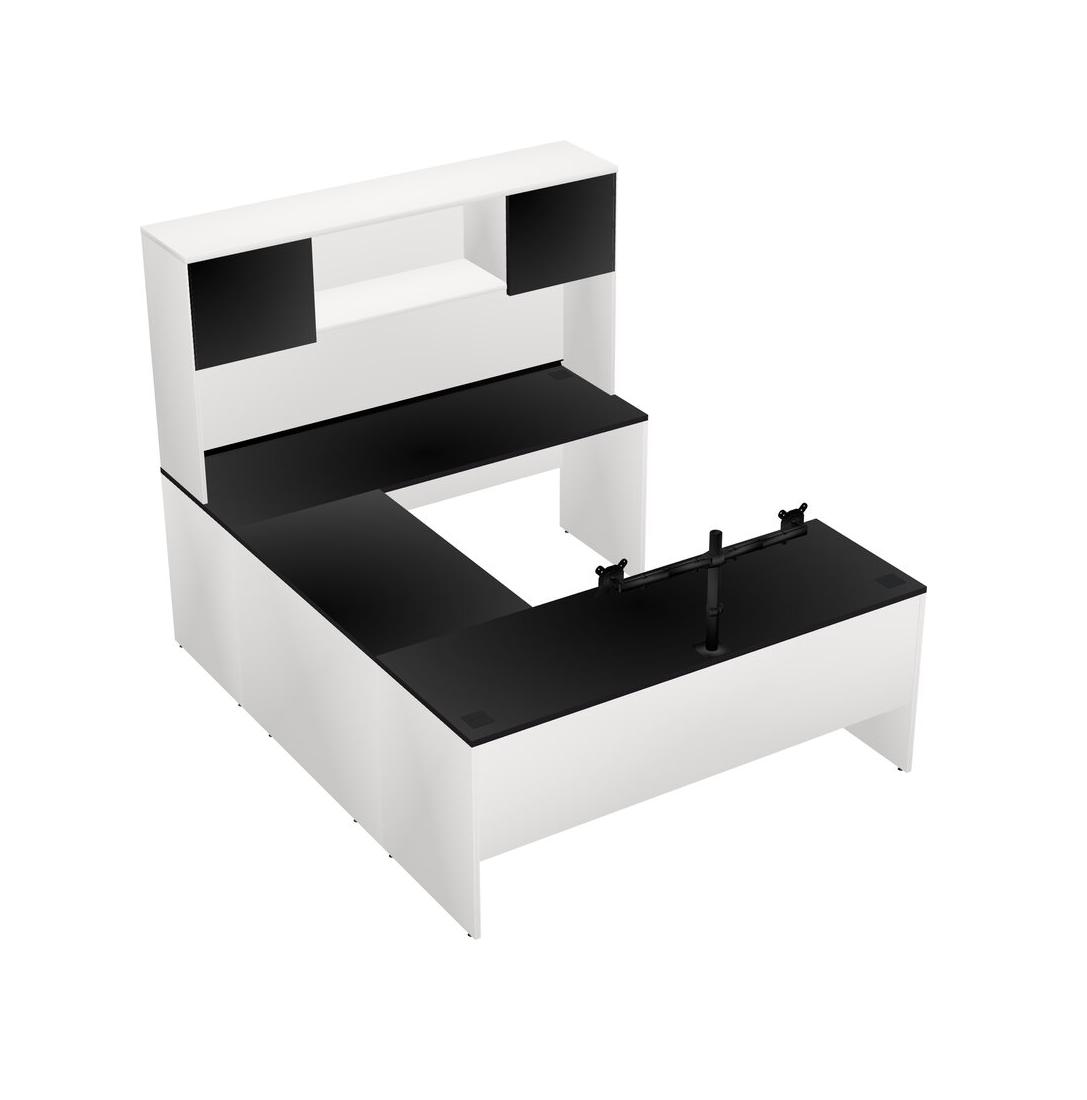 Bureau En U, Crédence, Bureau + Huche + Bras Pour écran (bras Doubles)