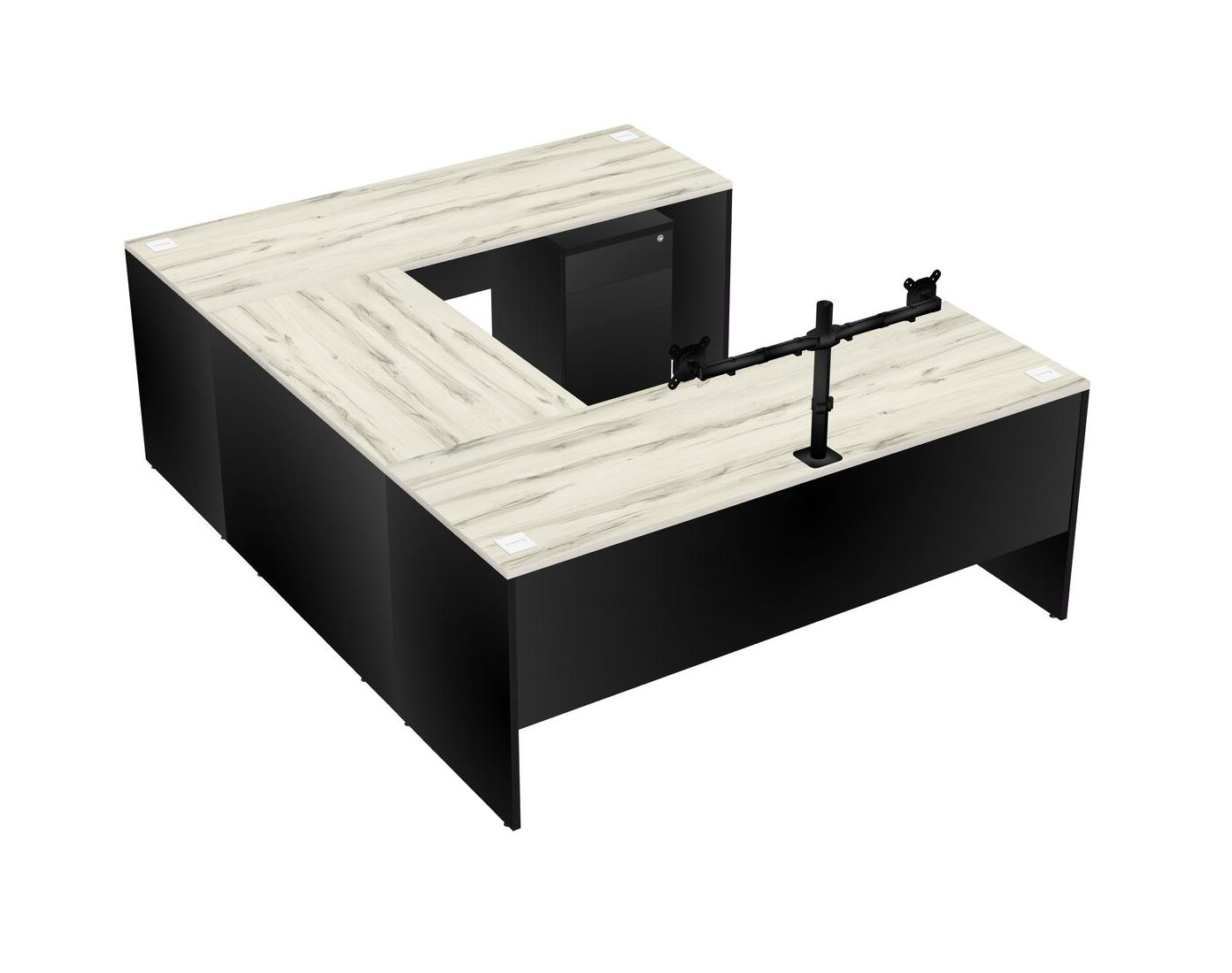 Bureau En U, Crédence, Tiroirs Mobiles En Bois, Bras Pour écran (double Bras)