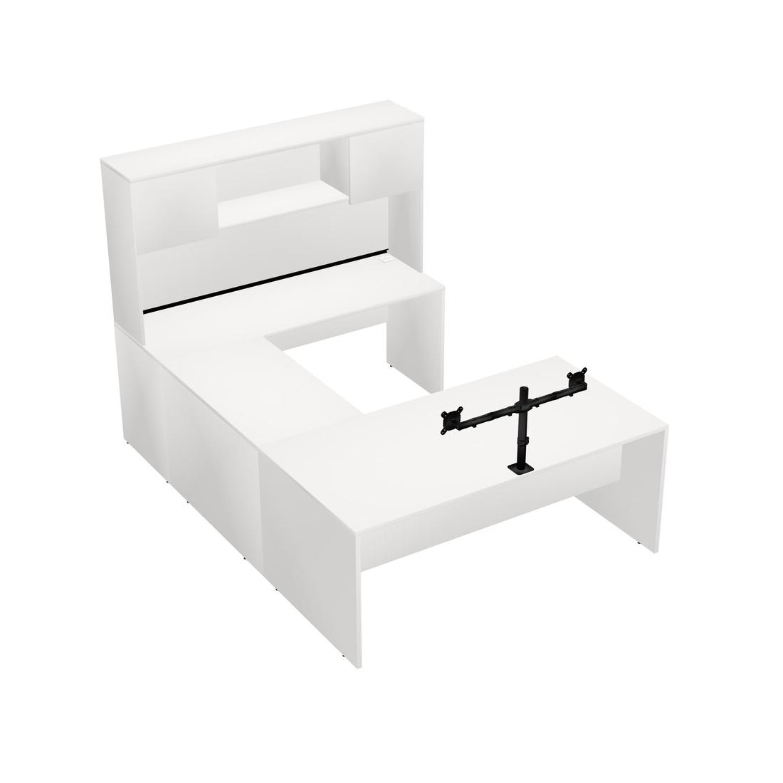 Bureau En U, Crédence, Bureau + Huche + Bras Pour écran (bras Doubles)