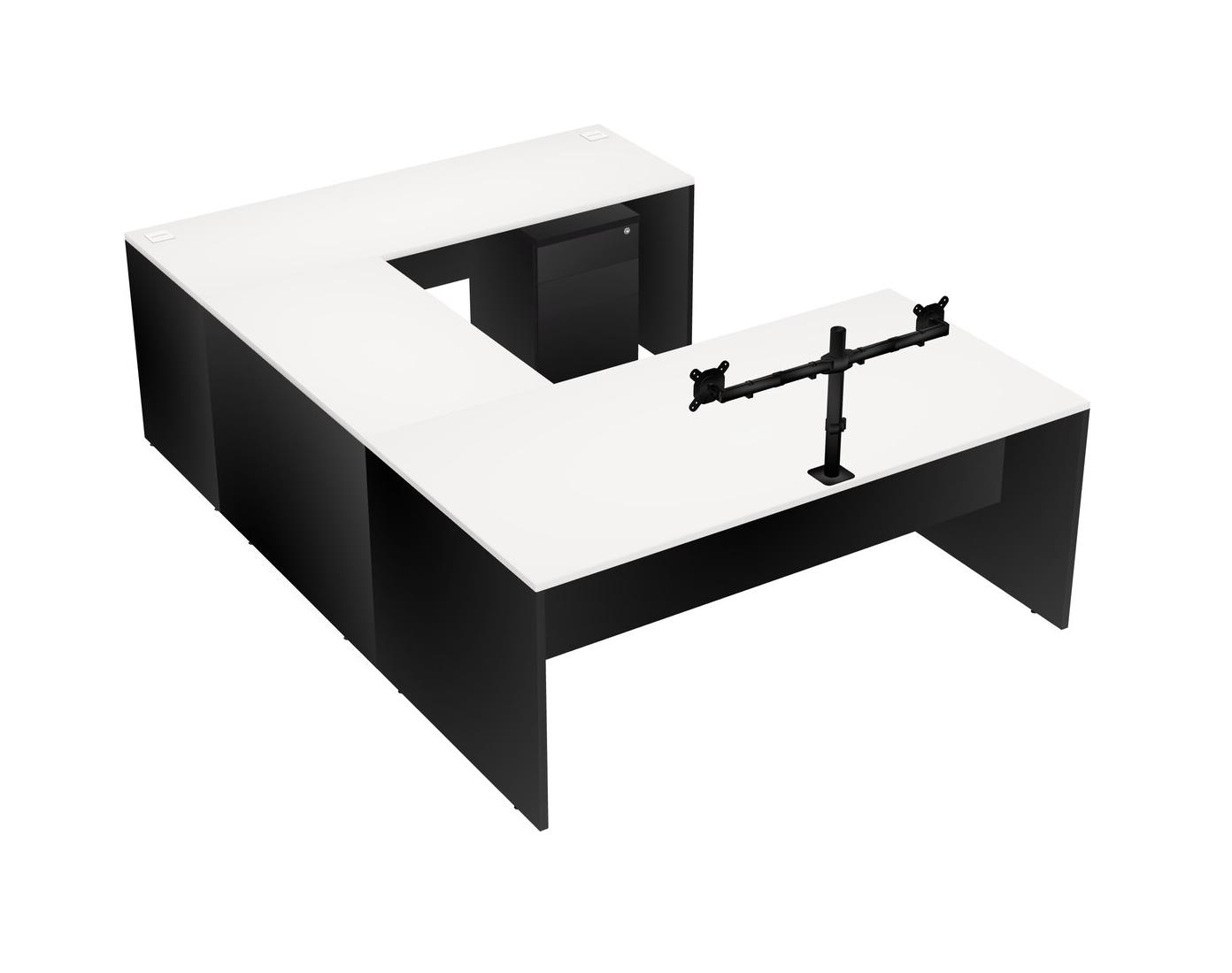 Bureau En U, Crédence, Tiroirs Mobiles En Bois, Bras Pour écran (double Bras)