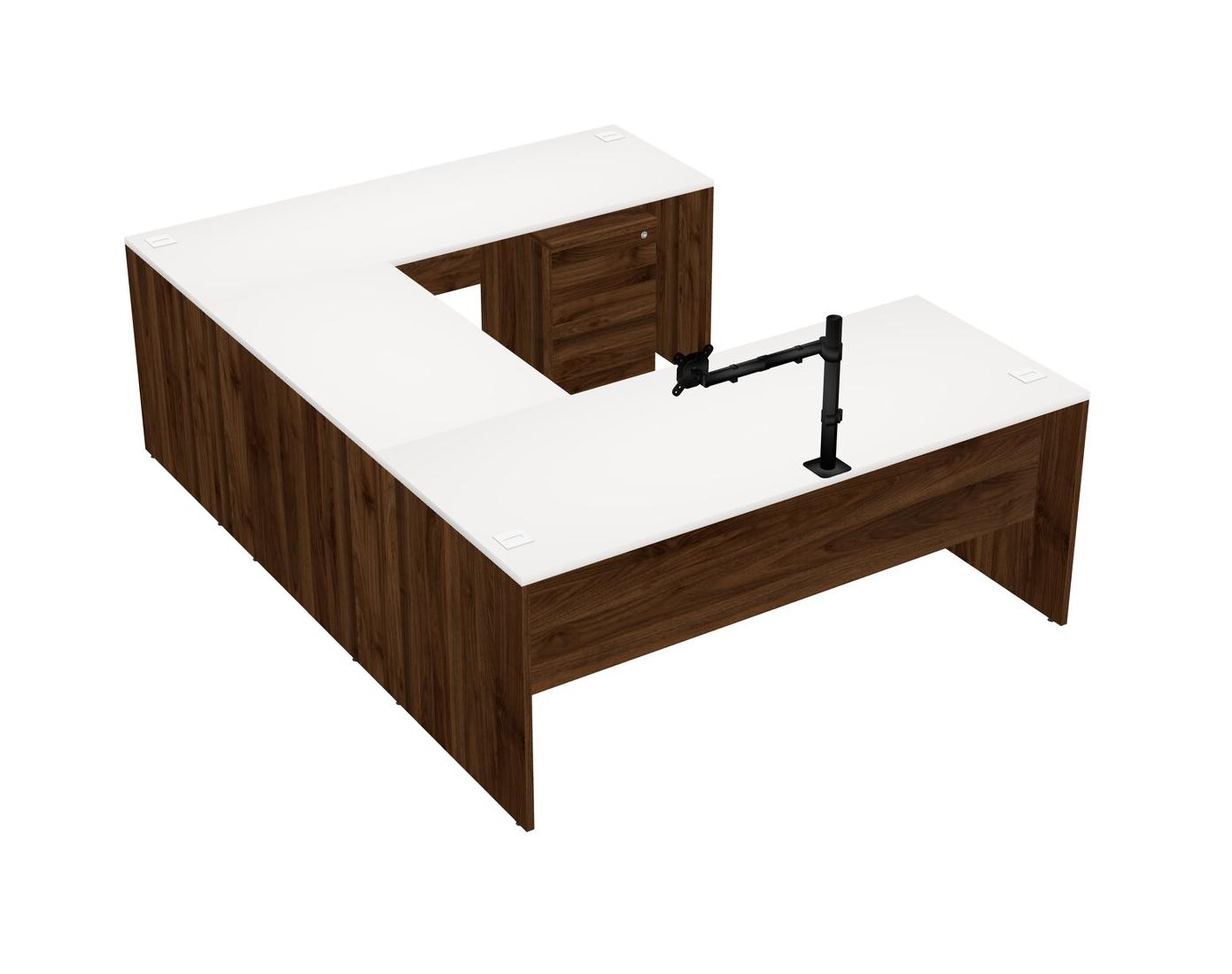 Bureau En U, Crédence, Tiroirs Mobiles En Bois, Bras D'écran (bras Simple)