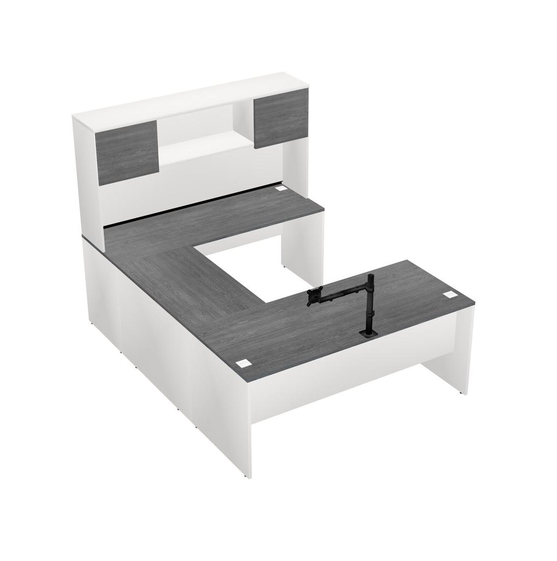 Bureau En U, Crédence, Bureau + Huche + Bras Pour écran (bras Simple)