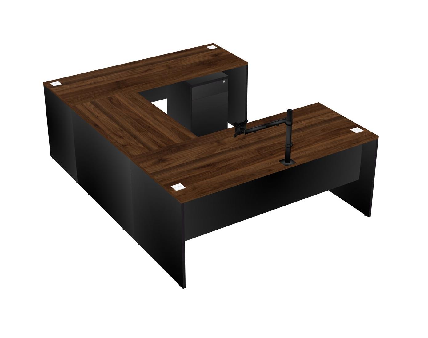 Bureau En U, Crédence, Tiroirs Mobiles En Bois, Bras D'écran (bras Simple)
