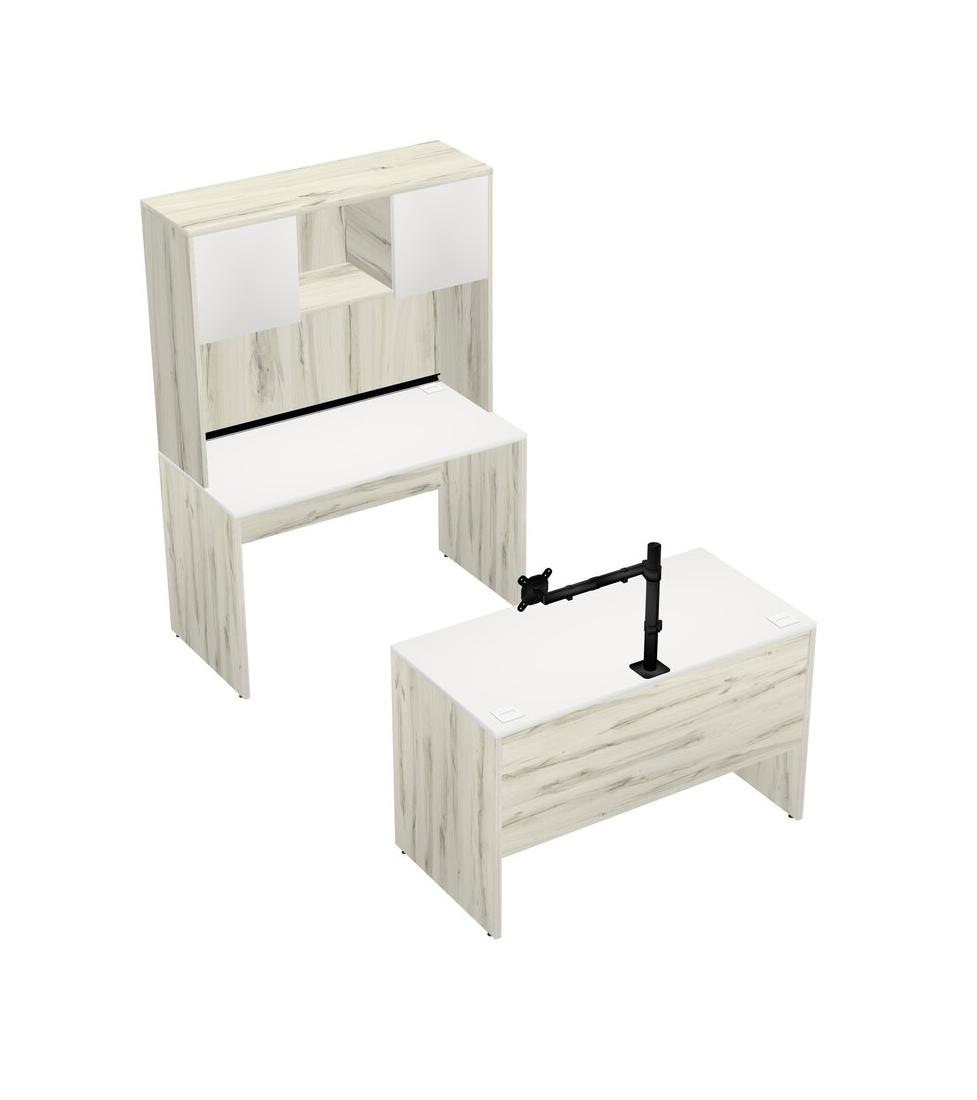 Bureau Parallèle, Bureau Crédence + Huche + Bras Pour écran (bras Simple)