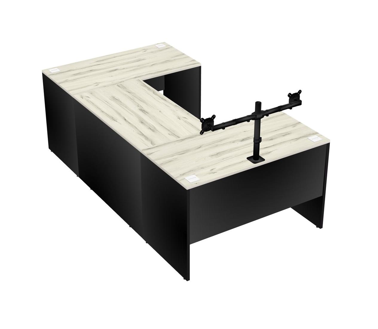 Bureau En U, Bureau Crédence + Bras Pour écran (bras Doubles)