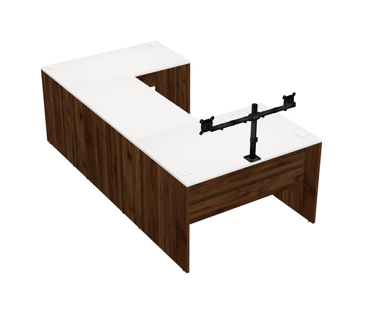 Bureau En U, Bureau Crédence + Bras Pour écran (bras Doubles)