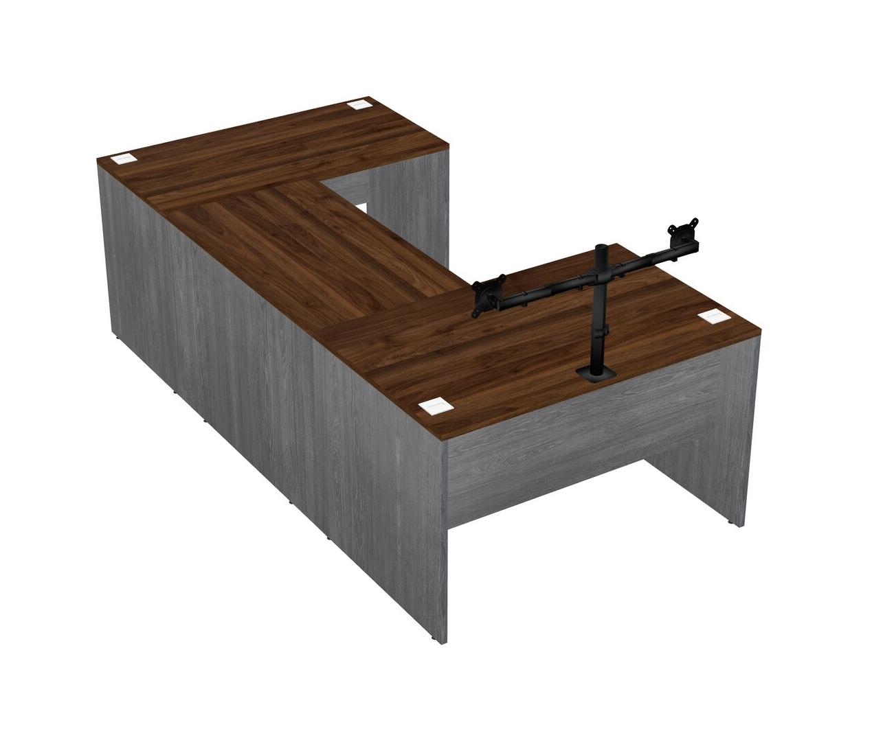 Bureau En U, Bureau Crédence + Bras Pour écran (bras Doubles)