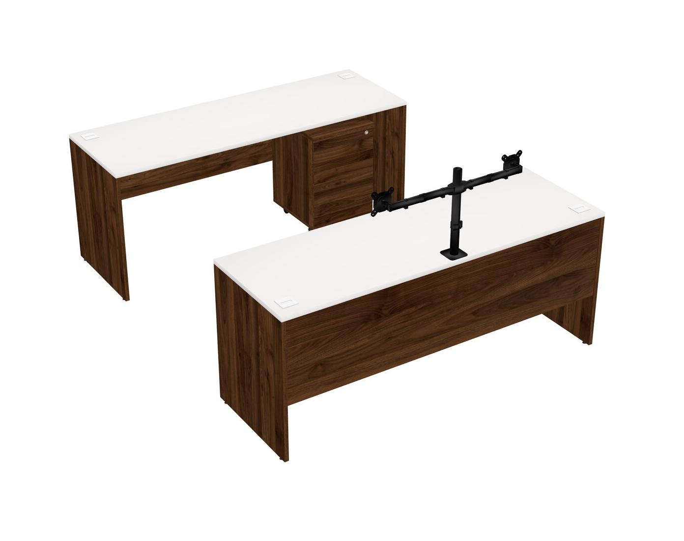 Bureau Parallèle, Bureau Crédence, Tiroirs Mobiles En Bois Et Bras Pour écran (bras Doubles)