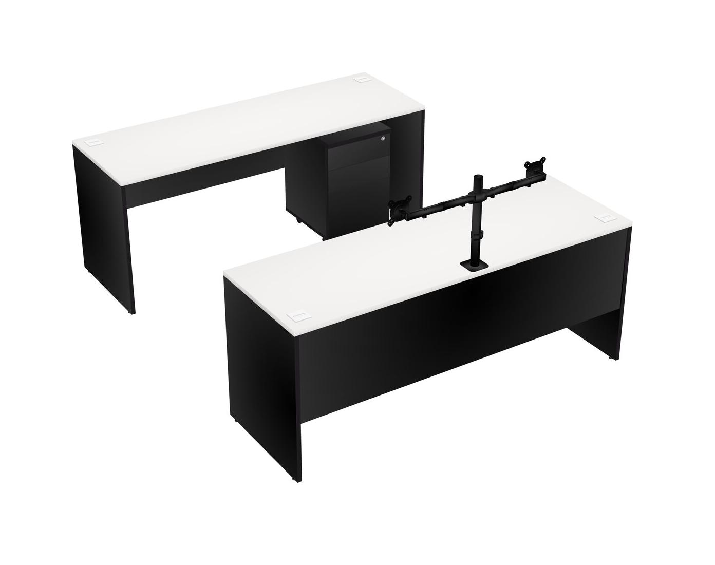 Bureau Parallèle, Bureau Crédence, Tiroirs Mobiles En Bois Et Bras Pour écran (bras Doubles)