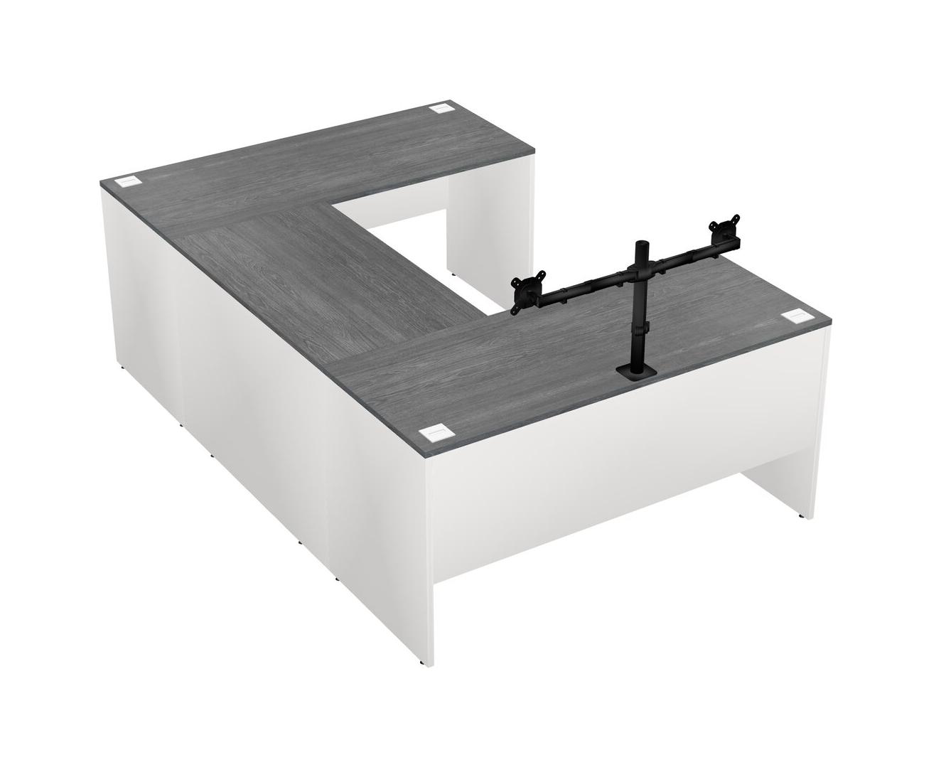 Bureau En U, Bureau Crédence + Bras Pour écran (bras Doubles)