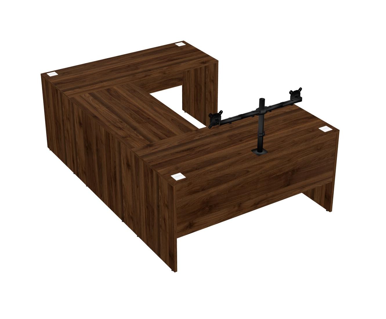Bureau En U, Bureau Crédence + Bras Pour écran (bras Doubles)