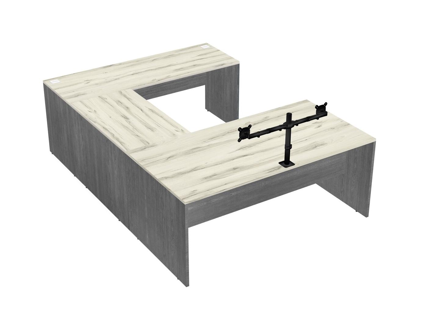 Bureau En U, Bureau Crédence + Bras Pour écran (bras Doubles)