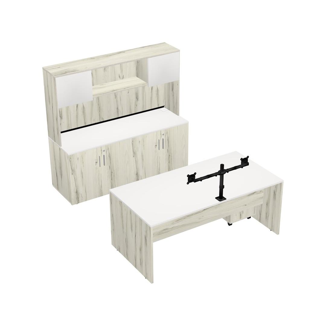Bureau Parallèle Blanc Avec Armoire De Rangement, Tiroirs Mobiles En Bois, Clapier Et Bras D'écran (bras Doubles)