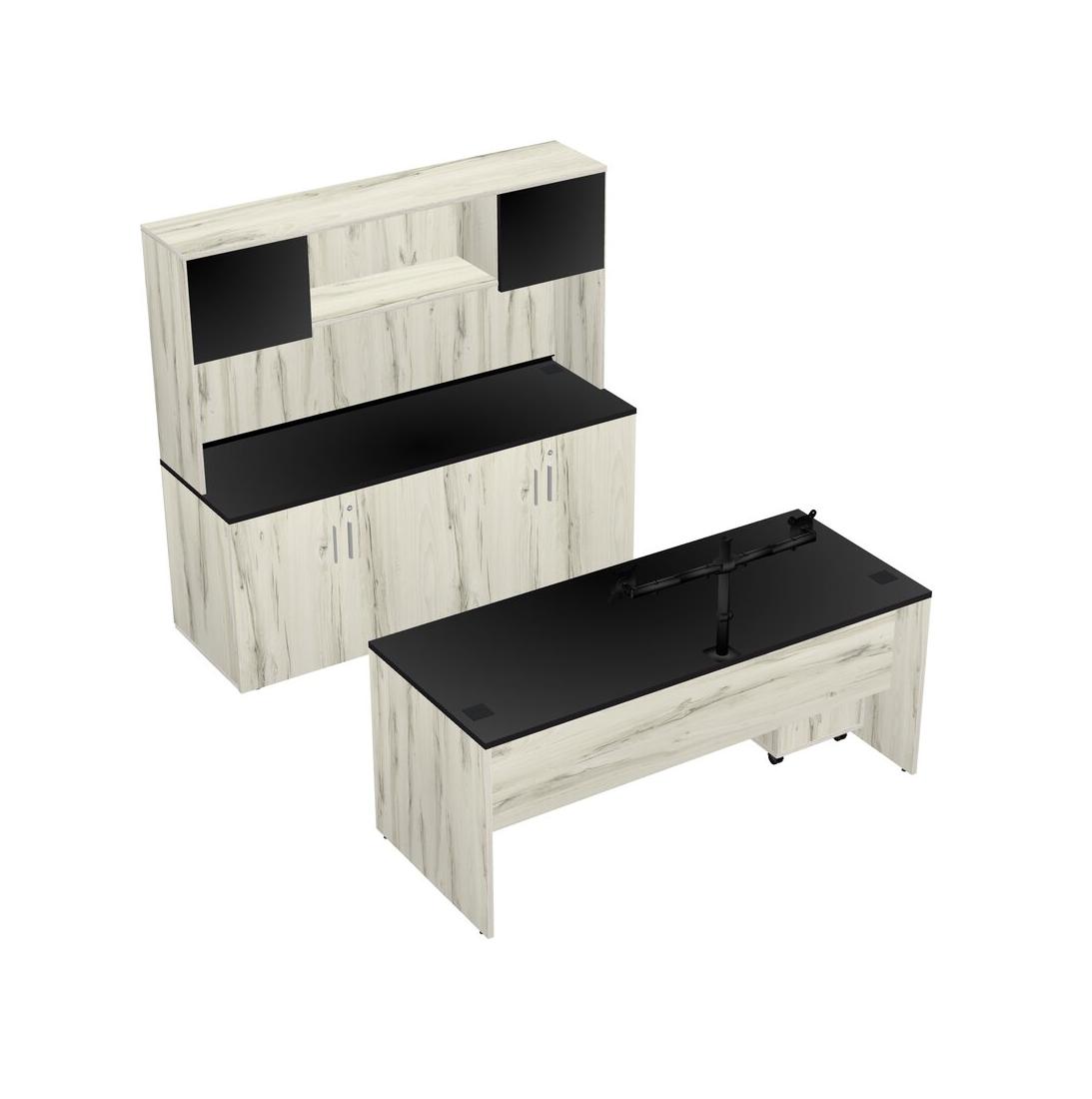 Bureau Parallèle Noir Avec Armoire De Rangement, Tiroirs Mobiles En Bois, Clapier Et Bras D'écran (bras Doubles)
