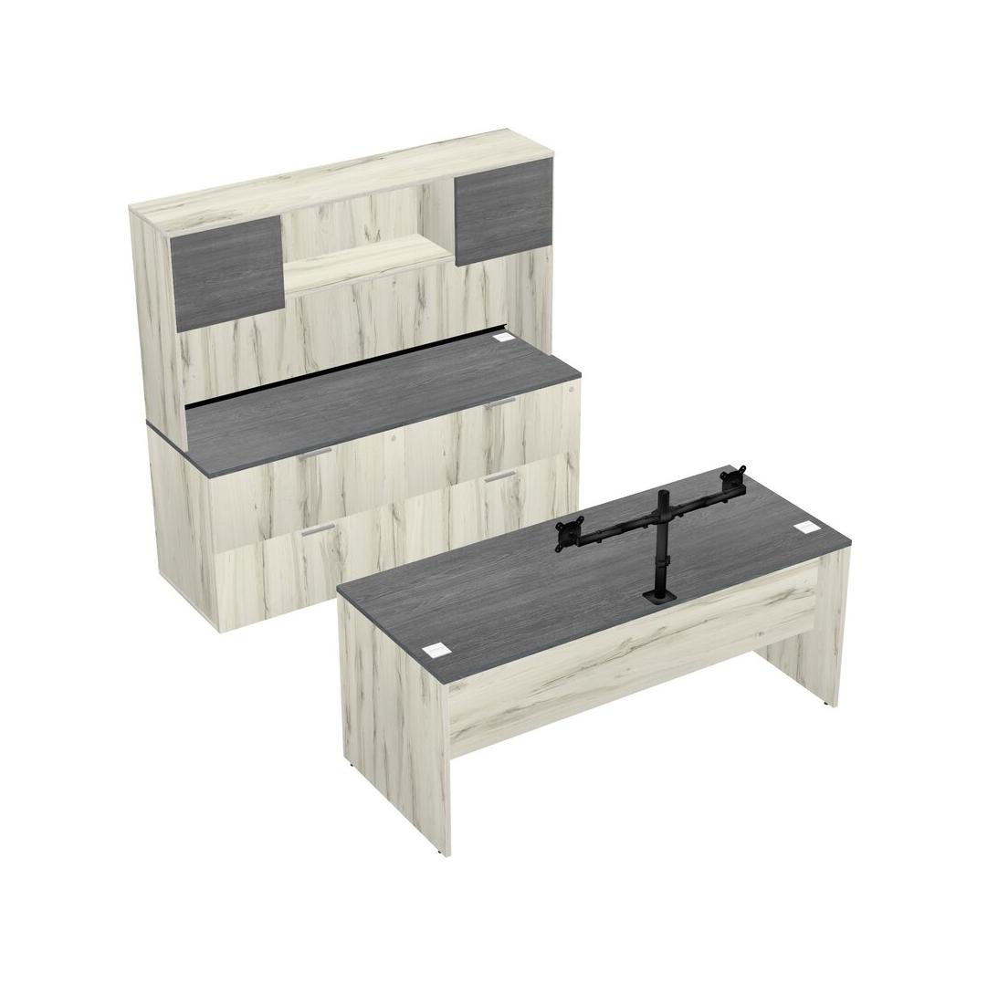 Bureau Parallèle Gris Avec Classeur Latéral, Clapier Et Bras D'écran (bras Doubles)
