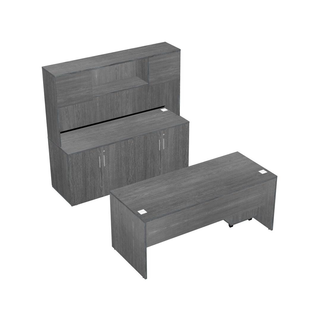 Bureau Parallèle Gris Avec Armoire De Rangement, Tiroirs Mobiles En Bois Et Clapier