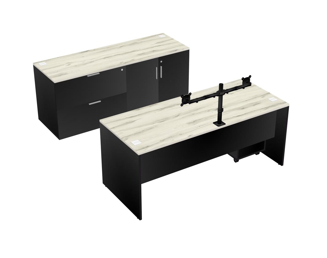 Bureau Parallèle Heinne Holz Avec Rangement Latéral Combiné + Tiroirs Mobiles En Bois + Bras D'écran (bras Doubles)
