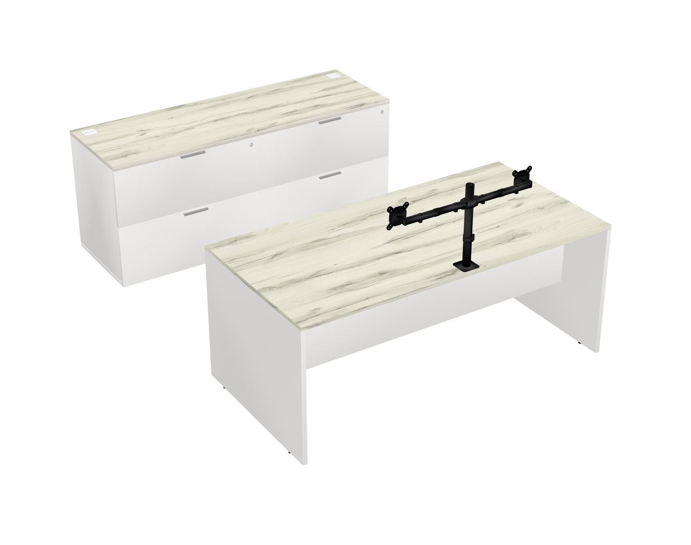 Bureau Parallèle Heinne Holz Avec Classeur Latéral Et Bras Pour écran (bras Doubles)