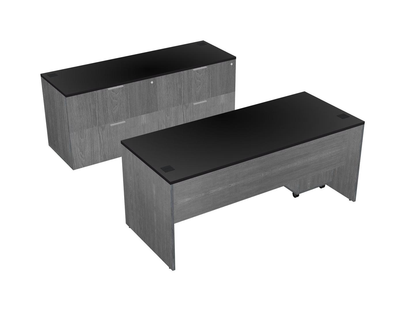 Bureau Parallèle Noir Avec Classeur Latéral Et Tiroirs Mobiles En Bois