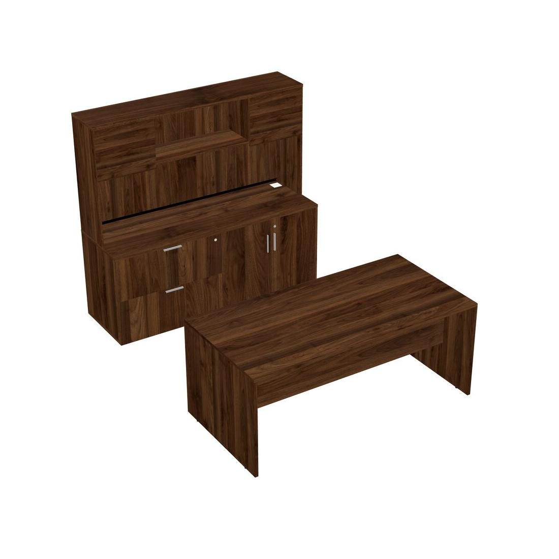 Bureau Parallèle En Noyer Columbia Avec Rangement Latéral Et Clapier
