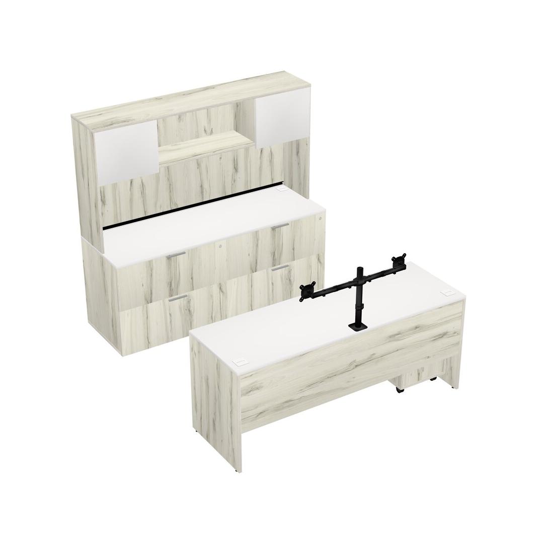 Bureau Parallèle Blanc Avec Classeur Latéral, Tiroirs Mobiles En Bois, Clapier Et Bras D'écran (bras Doubles)