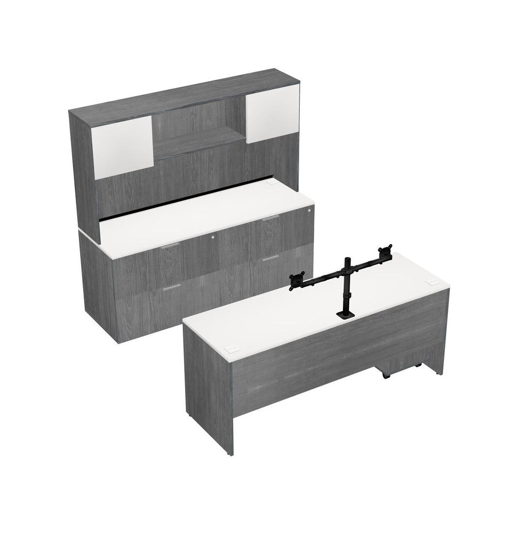 Bureau Parallèle Blanc Avec Classeur Latéral, Tiroirs Mobiles En Bois, Clapier Et Bras D'écran (bras Doubles)
