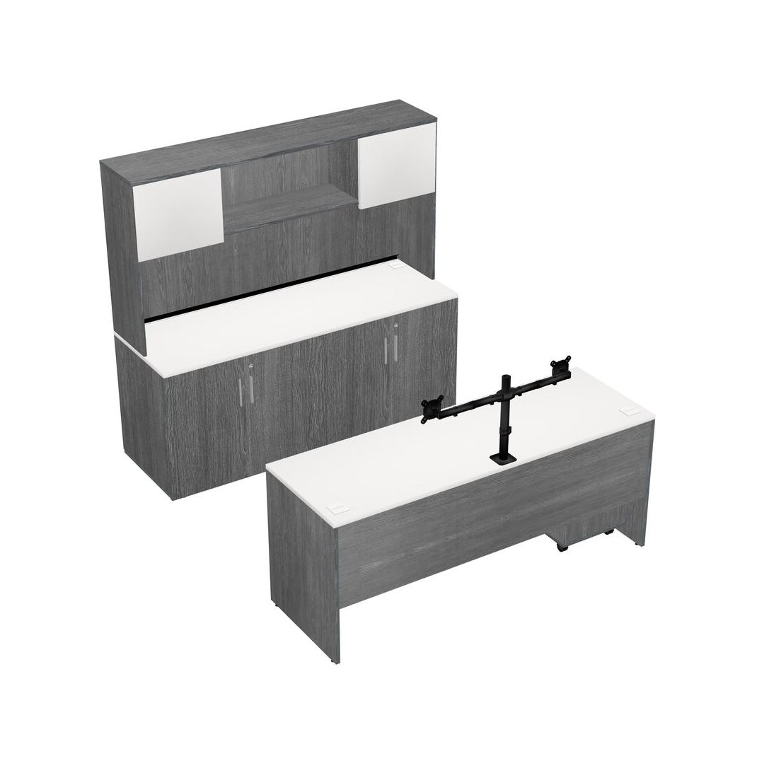 Bureau Parallèle Blanc Avec Armoire De Rangement, Tiroirs Mobiles En Bois, Clapier Et Bras D'écran (bras Doubles)