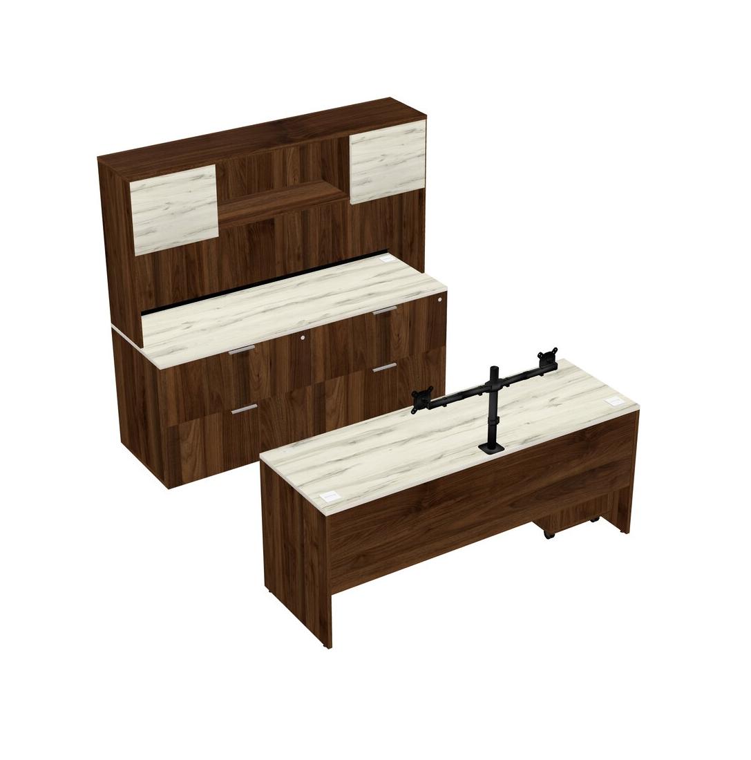 Bureau Parallèle Heinne Holz Avec Classeur Latéral, Tiroirs Mobiles En Bois, Clapier Et Bras D'écran (bras Doubles)