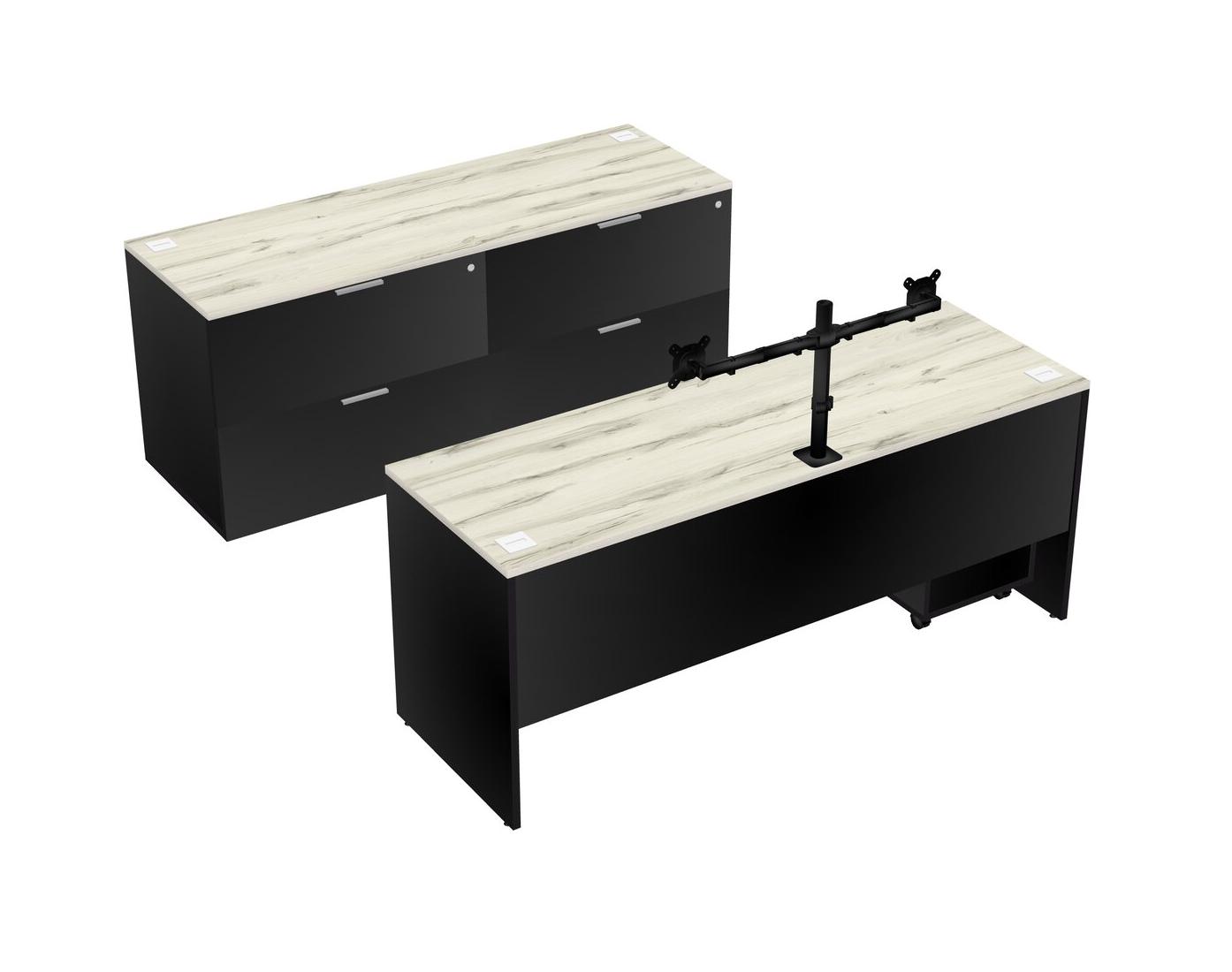 Bureau Parallèle Heinne Holz Avec Classeur Latéral, Tiroirs Mobiles En Bois Et Bras D'écran (bras Doubles)