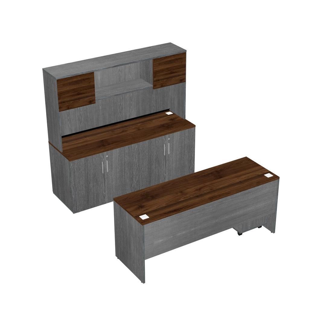Bureau Parallèle En Noyer Columbia Avec Armoire De Rangement, Tiroirs Mobiles En Bois Et Clapier