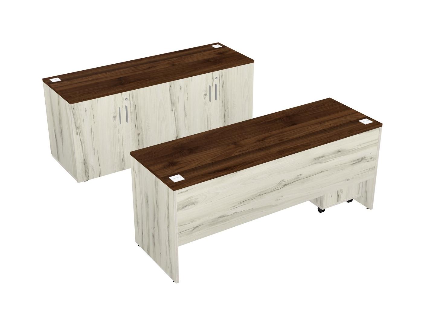 Bureau Parallèle En Noyer Columbia Avec Armoire De Rangement Et Tiroirs Mobiles En Bois