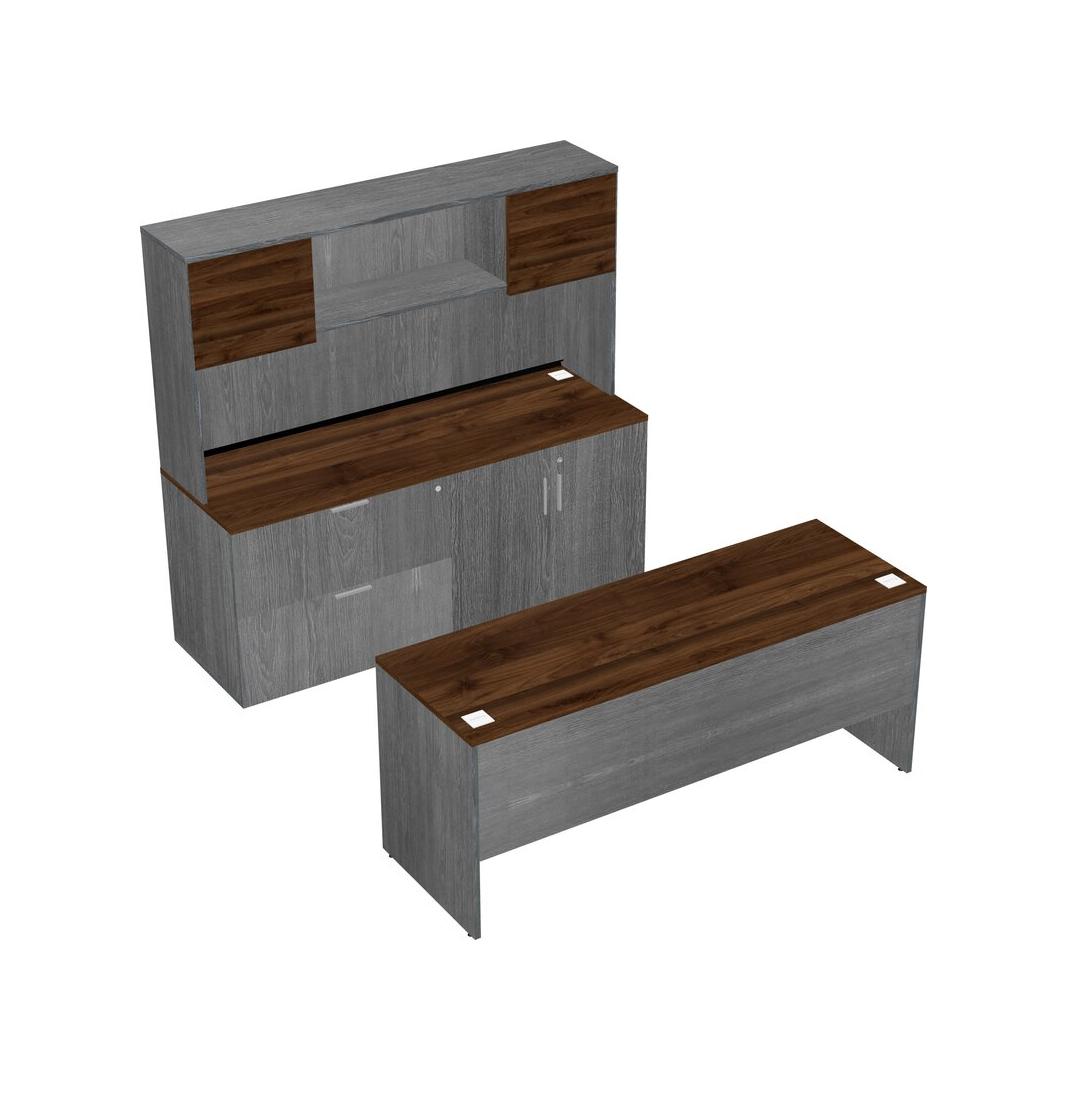 Bureau Parallèle En Noyer Columbia Avec Rangement Latéral Et Clapier