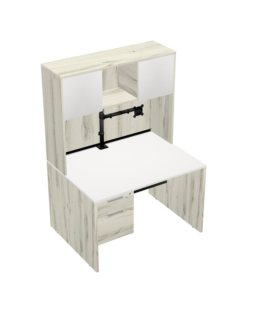 Bureau Rectangulaire Blanc Avec Tiroirs Suspendus Heinne Holz Et étagère Heinne Holz, Y Compris Un Bras D'écran Noir (bras Simple)