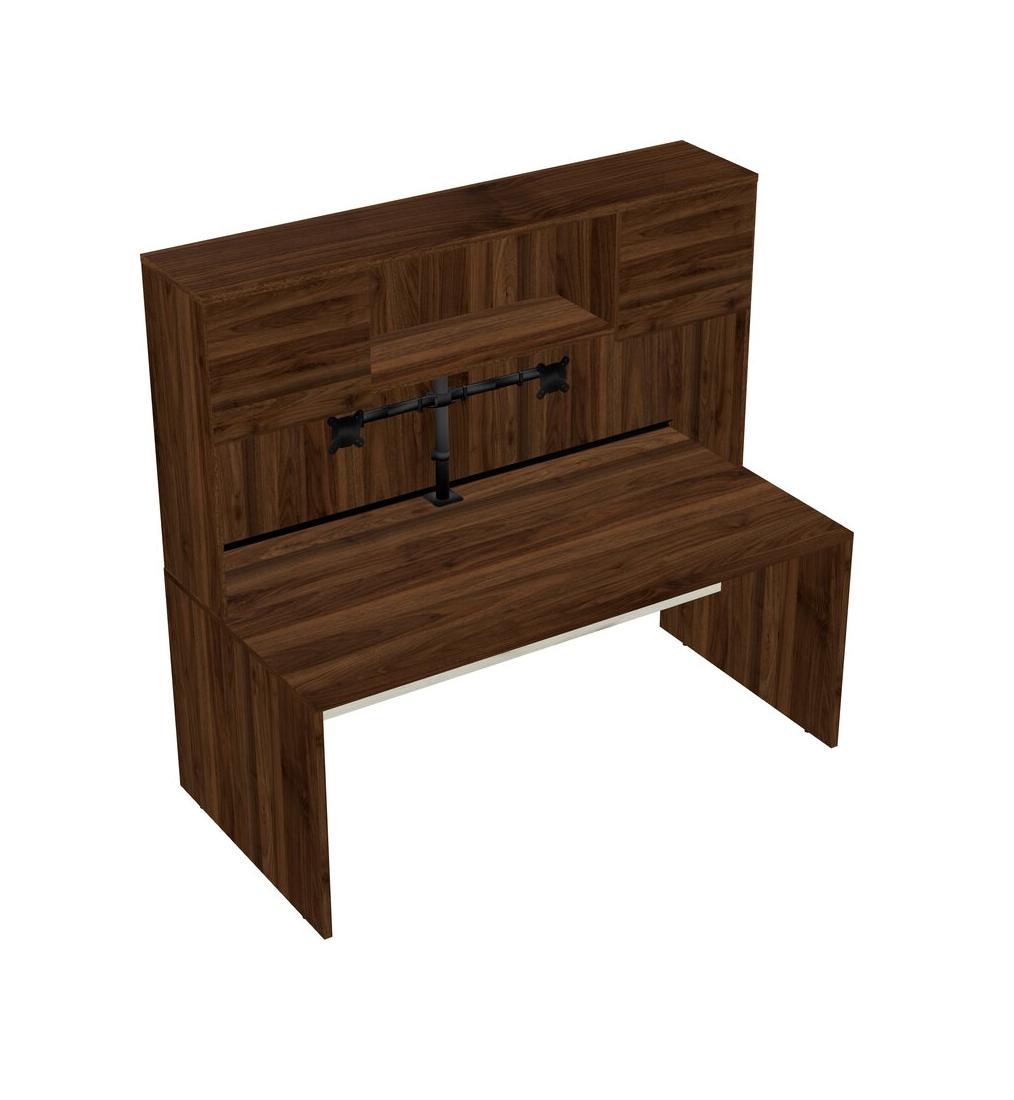 Bureau Rectangulaire En Noyer Columbia Et Huche En Noyer Columbia Avec Bras D'écran Noir (bras Doubles)