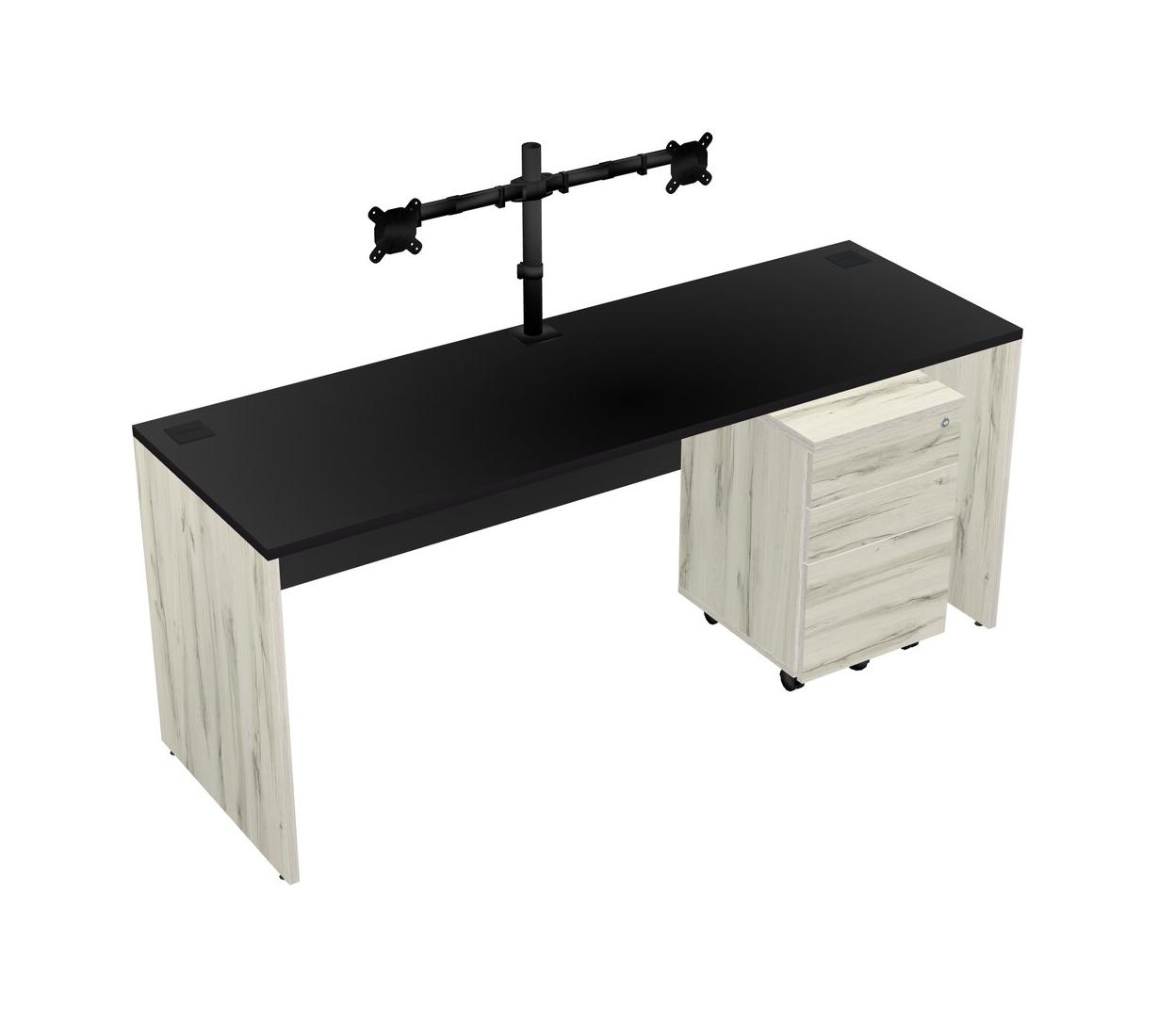 Bureau Rectangulaire Noir Avec Tiroirs Mobiles En Bois Heinne Holz Et Bras D'écran Noir (bras Doubles)