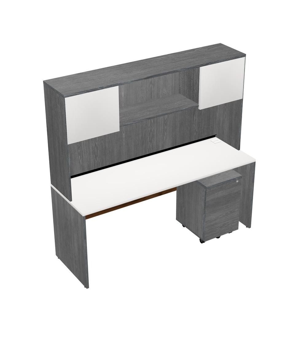 Bureau Rectangulaire Blanc Avec Tiroirs Mobiles En Bois Gris Et Clapier Gris