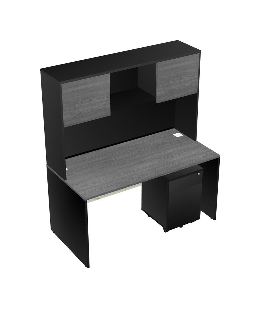 Bureau Rectangulaire Gris Avec Tiroirs Mobiles En Bois Noir Et Bahut Noir