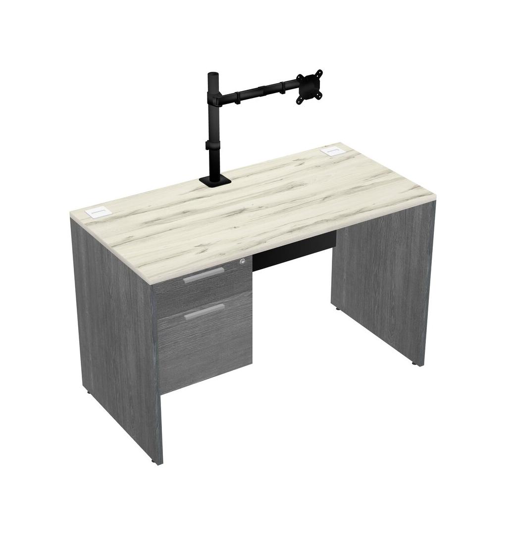 Bureau Rectangulaire Heinne Holz Avec Tiroirs Suspendus Gris Et Bras D'écran Noir (bras Simple)