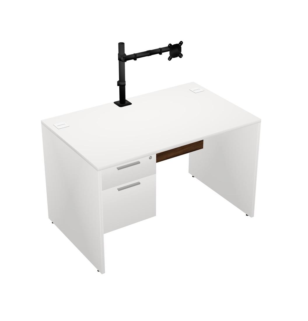 Bureau Rectangulaire Blanc Avec Tiroirs Suspendus Blancs Et Bras D'écran Noir (bras Simple)