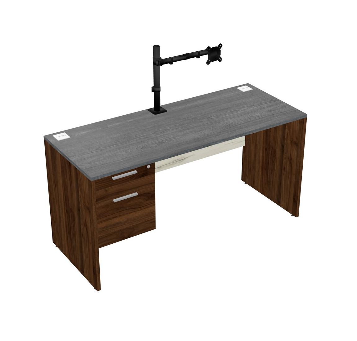 Bureau Rectangulaire Gris Avec Tiroirs Suspendus En Noyer Columbia Et Bras D'écran Noir (bras Simple)